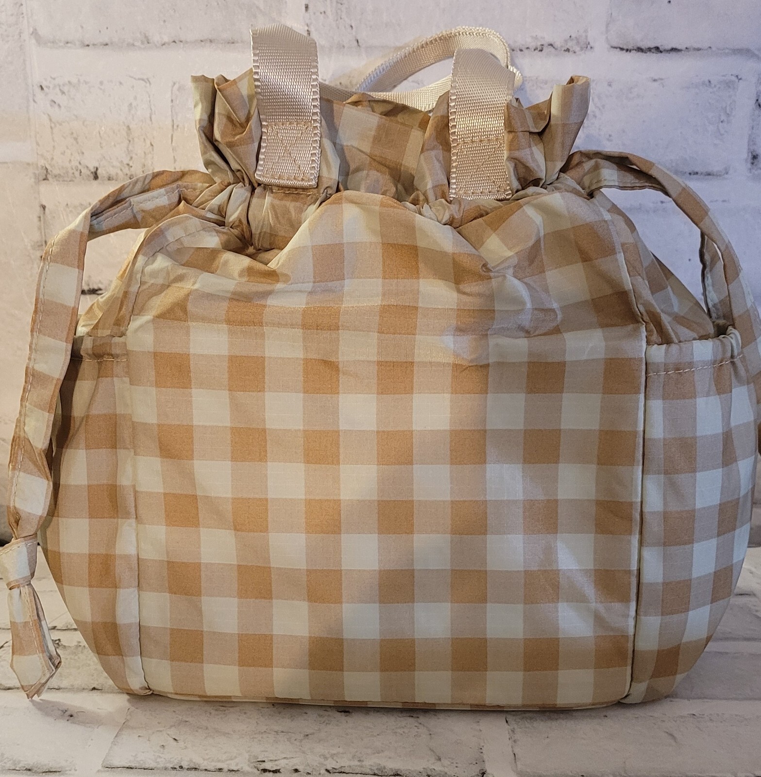 Calpak Insulated Lunch Bag Tan Gingham Drawstring Water Resistant Multi Pockets Ebay